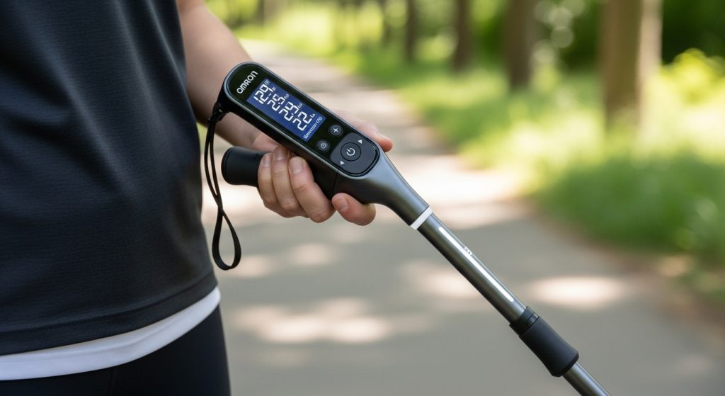 The Omron WS-100 Smart Walking Stick combines classic support with modern features. Designed for elderly users and patients in rehab, it provides stability and integrates smart sensors for fall detection and safety monitoring.