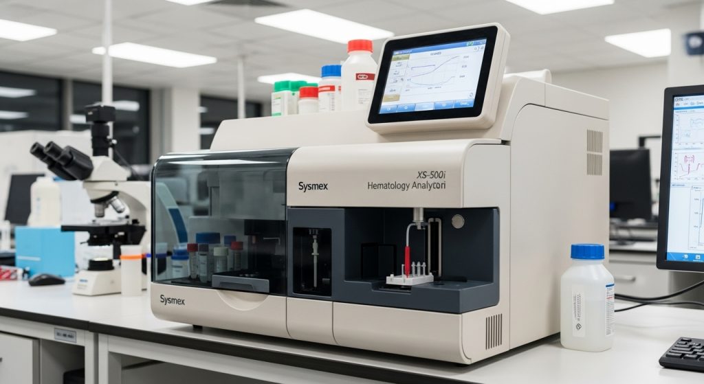 Sysmex XS-500i – Compact hematology analyzer with 5-part differential capability.